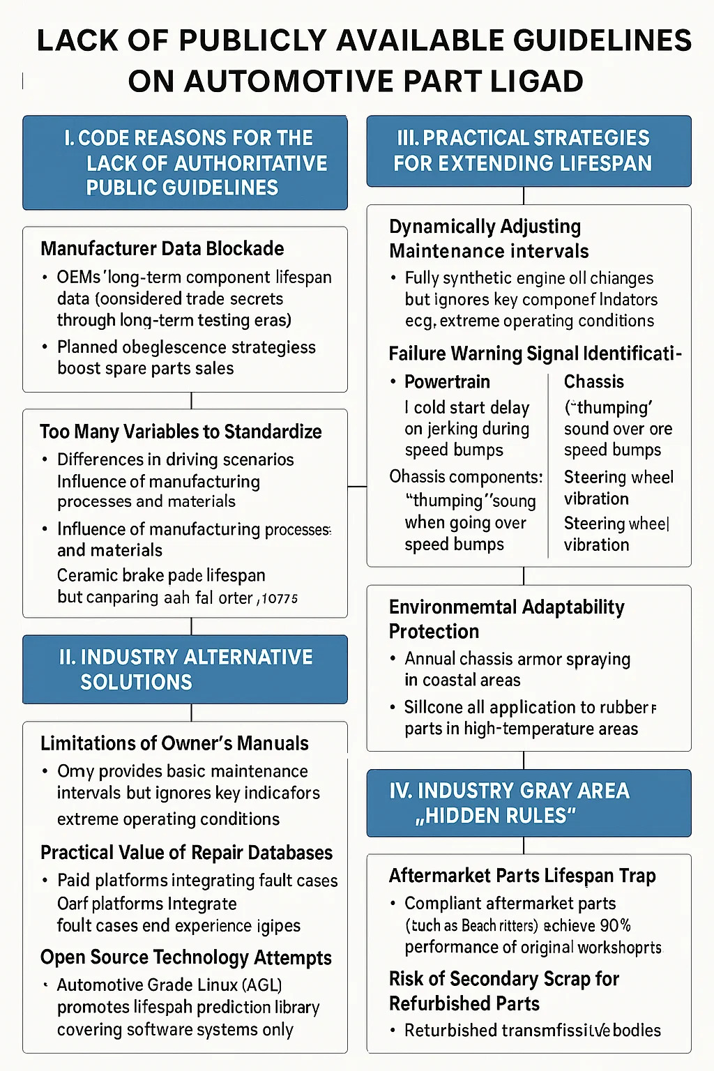 • Beperkingen van de gebruikershandleidingen: Biedt alleen basisonderhoudsintervallen (bijv. olie verversen), maar negeert waarschuwingsindicatoren voor belangrijke onderdelen (bijv. tekenen van slijtage van het transmissieklephuis). Omvat geen aanbevelingen voor extreme bedrijfsomstandigheden (bijvoorbeeld het vroegtijdig verversen van de differentieelolie na offroad-rijden).