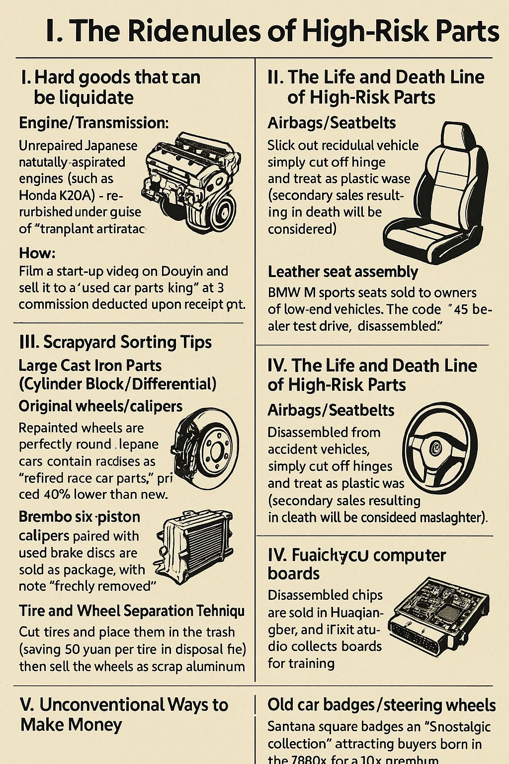 I. Harde goederen die kunnen worden geliquideerd – de regels van de zwarte markt voor gebruikte auto-onderdelen