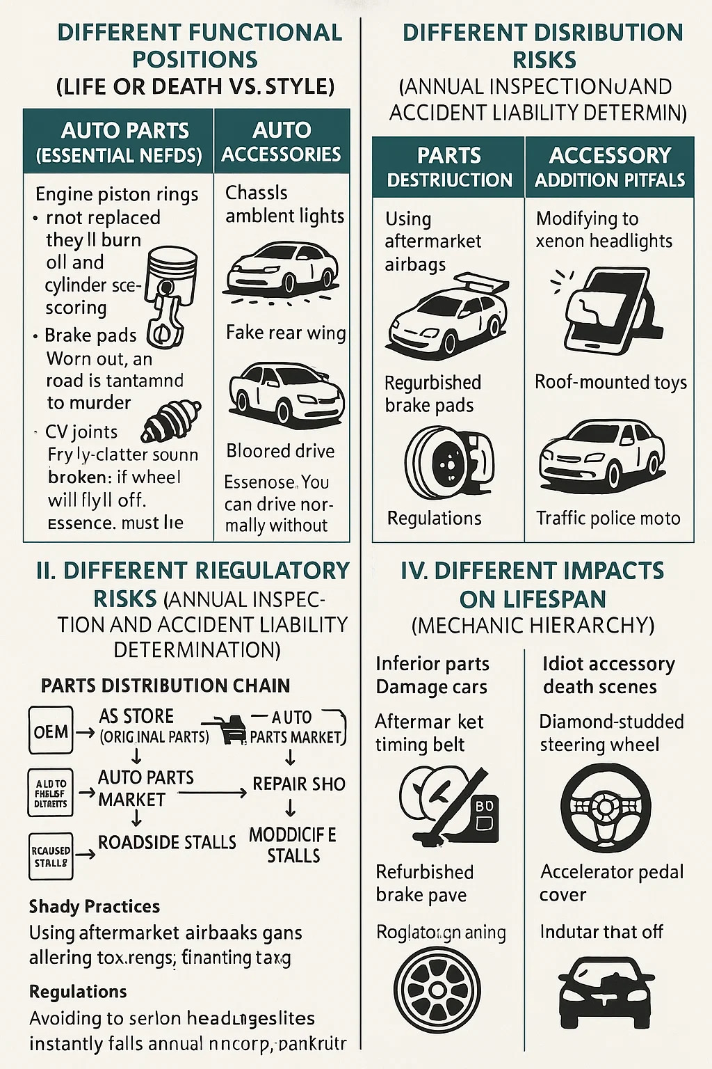 Het fundamentele verschil tussen Auto-onderdelen en auto-accessoires