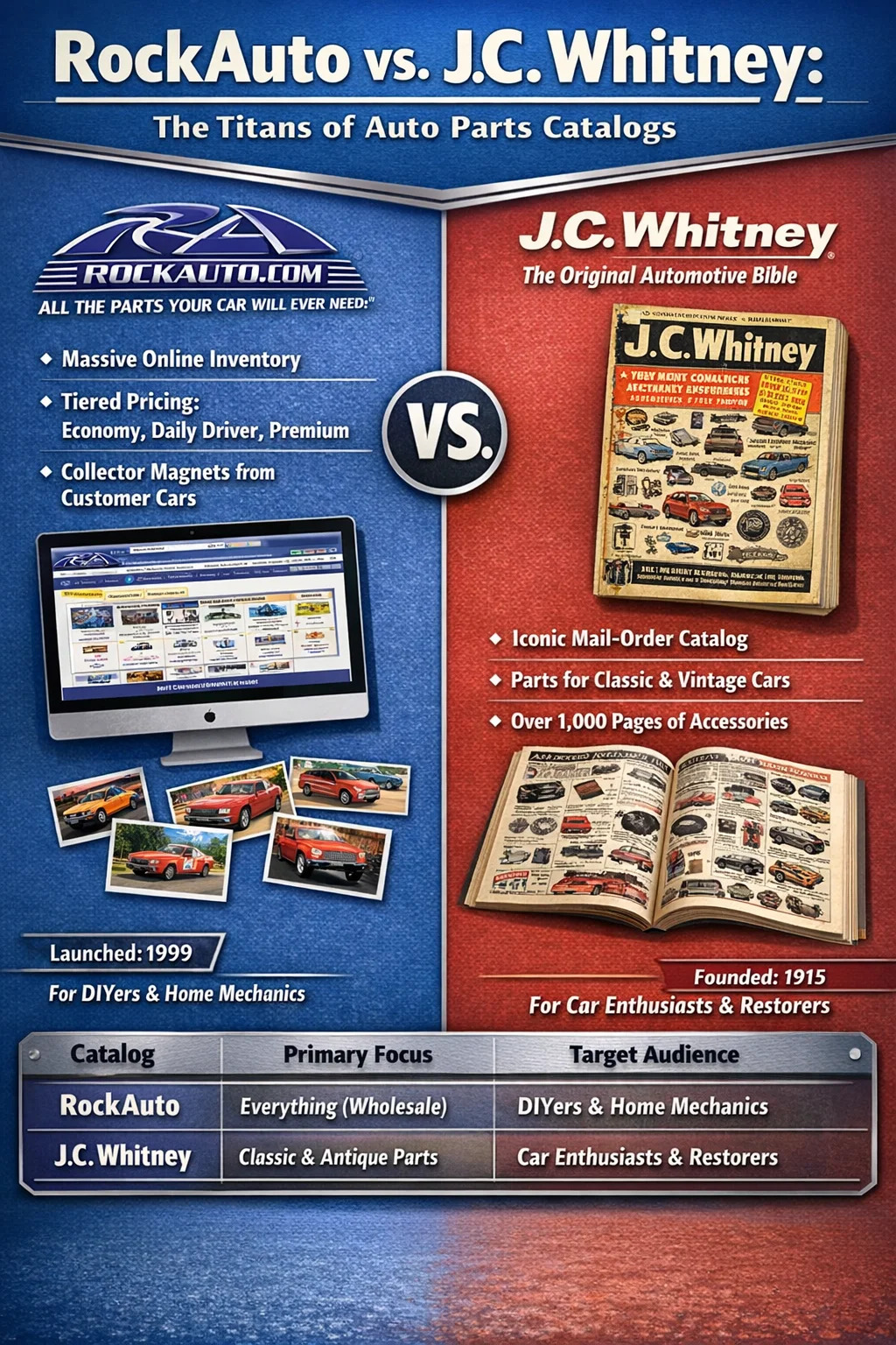 Wanneer mensen vragen naar de beroemdste auto-onderdelencatalogus, domineren twee namen het gesprek: RockAuto voor het digitale tijdperk en J.C. Whitney voor historische betekenis. RockAuto is de moderne gouden standaard geworden en biedt een uitgebreide online database die vrijwel alle auto’s bestrijkt auto onderdeel vervaardigd in de afgelopen decennia. Voor degenen die zich het tijdperk van papieren postordercatalogi herinneren: J.C. Whitney was de onbetwiste koning, bekend als de ‘Bijbel’ van de doe-het-zelfwereld in de auto-industrie.